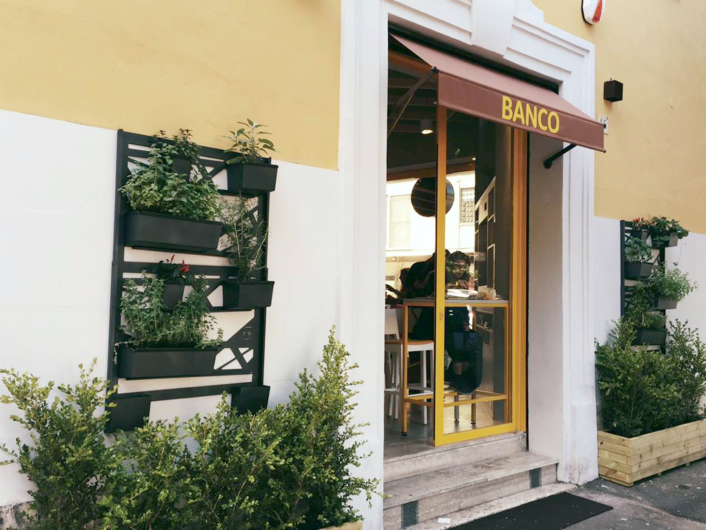 Banco è un fast food naturale, dove è possibile mangiare velocemente ma anche sano e di qualità. Il primo Fast food di Banco è nato ad Ostiense, quartiere in continua evoluzione, recuperando un compro oro in abbandono a fianco della ferrovia. Abbiamo supportato Banco sin dalla nascita contribuendo alla formazione del concept visivo e esperienziale dell’attività. La trasformazione è partita dalla strada riqualificando una angolo di marciapiede in degrado attraverso una nuova illuminazione, un opera di street art e rastrelliere per biciclette. All’esterno è caratterizzato dal Il locale interno si caratterizza per l’aspetto monomaterico e neutro delle superfici in microcemento su cui si inseriscono elementi naturali in legno di acero come il bancone e il mobile frigovetrina.